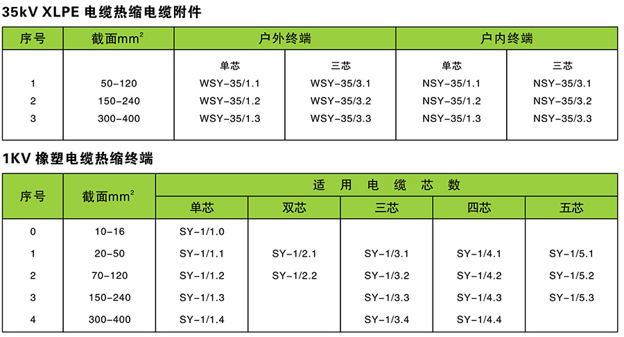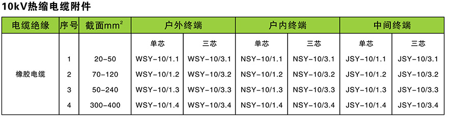 热缩电缆附件以体积小,重量轻,运行可靠,安装方便,价格便宜等特点,已广泛应用于电力,石化,钢铁等各部门的输配电系统。本公司现已能生产35kV及以下各种规格,型号的电缆户内(外)终端和中间接头。